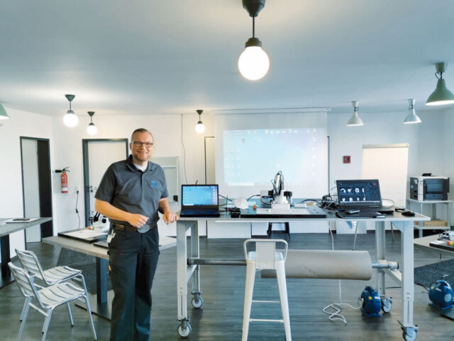 Im Zusammenspiel mit der X4B Serviceagentur ist so das Schulungsangebot der „Techkollegen“ entstanden. Mitarbeitende sollen technische Veränderungsprozesse ihres Betriebes orientiert, sorgenfrei und inspiriert mitgestalten können. Dies kann deshalb so gut gelingen, weil das Trainingskonzept von Mitarbeitenden für Mitarbeitende entwickelt wurde. Nicht umsonst verstehen sich Pätzold und sein Team als „Techkollegen“. Den Einstieg in das Programmieren kollaborierender Roboter liefert ein niedrigschwelliger, zweitägiger Robotik-Kurs, der vom „Techkollegen“-Team vor Ort in den Unternehmen durchgeführt werden kann.