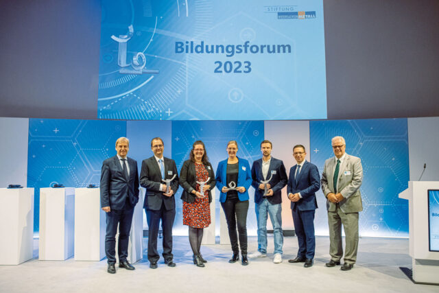 Ihr Herz schlägt für MINT und diese Energie leiten sie mit viel Spannung und Dynamik an ihre Schülerinnen und Schüler weiter: Die Stiftung NiedersachsenMetall hat zum 19. Mal Lehrerinnen und Lehrer aus Niedersachsen ausgezeichnet, die auf herausragende Weise das Interesse junger Menschen an Technik und Naturwissenschaften wecken und fördern. Die vier Preisträger aus der Stadt Hannover, Bissendorf (Landkreis Osnabrück), Vechelde (Landkreis Peine) und Ostrhauderfehn (Landkreis Leer) nahmen ihre Auszeichnungen beim Bildungsforum im Schloss Herrenhausen von Niedersachsens Wissenschaftsminister Falko Mohrs und Dr. Volker Schmidt, Hauptgeschäftsführer von NiedersachsenMetall und zugleich Vorstand der Stiftung, entgegen.
