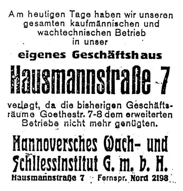 ▲ Zeugnis des schnellen Erfolgs: Das Angebot des Hannoverschen Wach- und Schließinstituts wurde so gut angenommen, dass in kurzer Zeit schon größere Räumlichkeiten bezogen werden mussten.