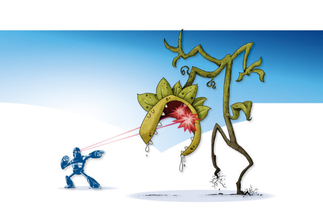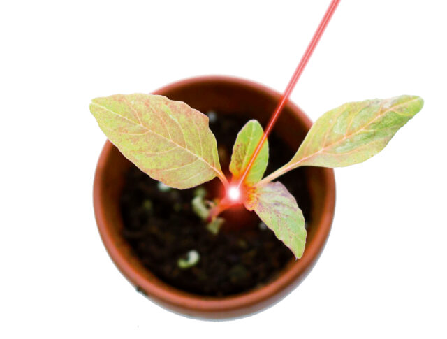 ▲ Umweltfreundlicher Unkrautvernichter: Mit einem gezielten Schuss ins Wachstumszentrum vernichtet der Laser die unerwünschte Pflanze.